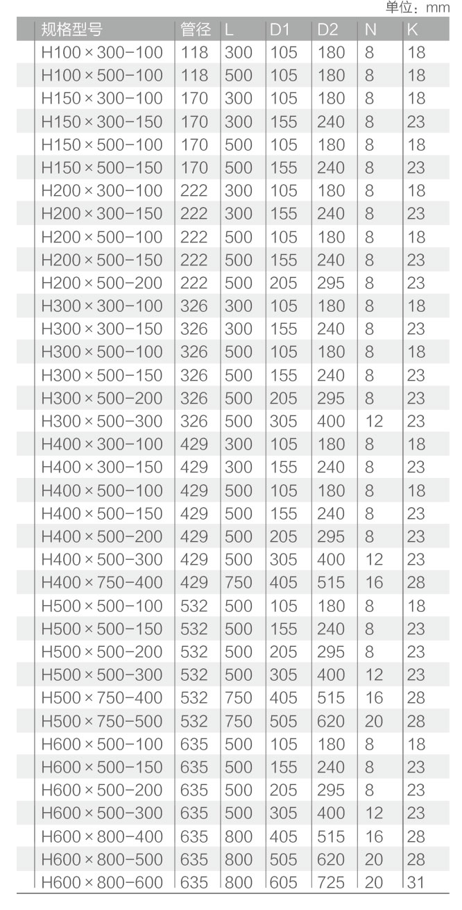 球墨鑄鐵管全密封開孔分流器主要尺寸