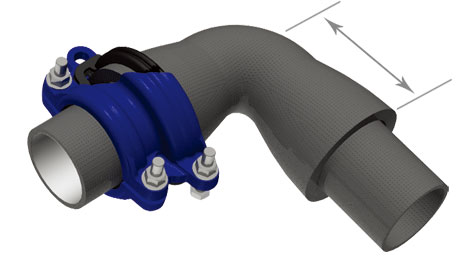 適用于球墨鑄鐵管承口三通、承口彎頭等部位的搶修。因空間有限,普通承插修補(bǔ)器放不下而無(wú)法搶修的情況下使用。