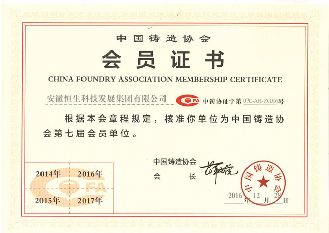 鑄造協(xié)會(huì)會(huì)員證書